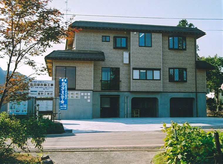 4世代の家族が暮らす2世帯住宅。別々の水周りが程よい距離を保ち、いつでもお互いの様子がうかがえる仲良し家族の住まい。 家族数から、希望される家の大きさも当初予定より大きくなり、敷地の有効利用の面からも思い切って、耐雪屋根にしました。 これで3mの積雪があっても大丈夫。 内装には、ナラの床材、スギの腰壁、木目の端正なピーラー(松)を建具に使用するなど、適材適所を考えた素材使いで木の感じをうまく出すことが出来ました。